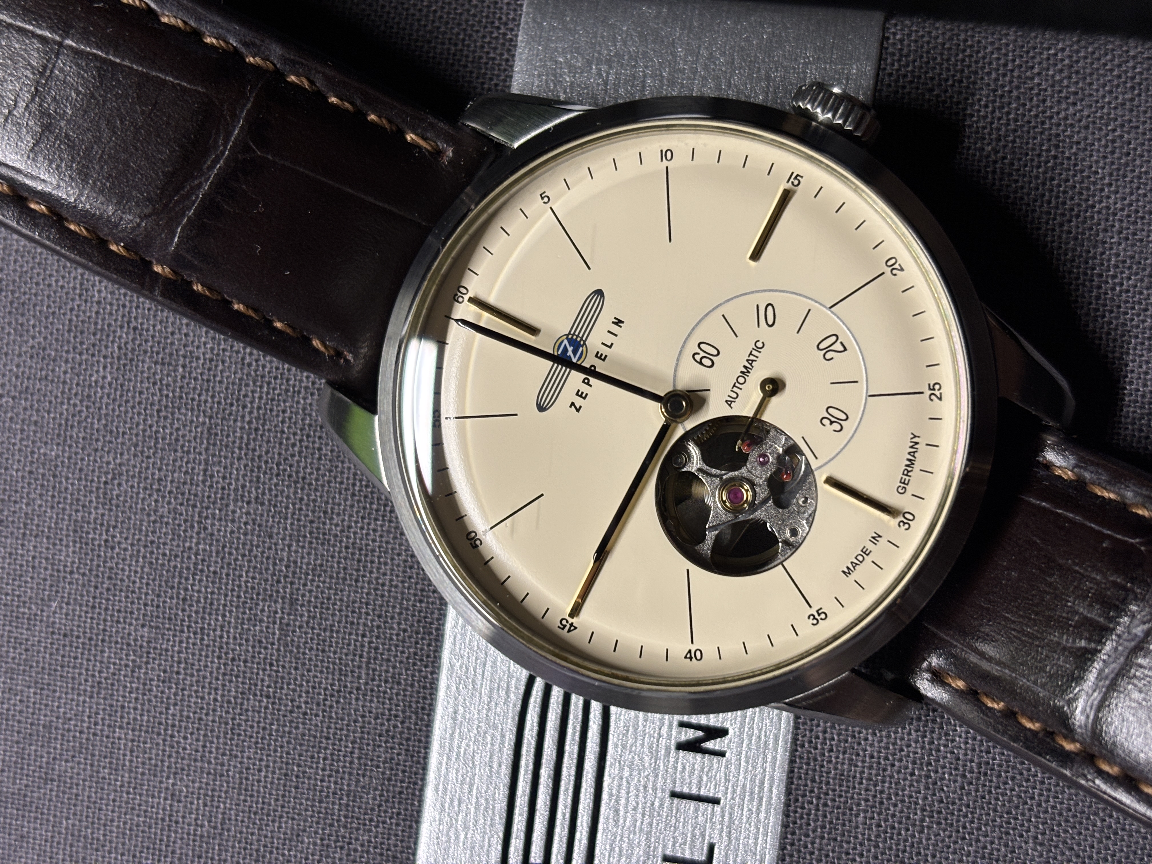 Die Zeppelin Flatline Open Heart 7364-5 ist eine elegante Automatikuhr, die vor allem durch ihr klassisches Design und den Blick auf ihr mechanisches Innenleben überzeugt. Besonders auffällig ist das sogenannte „Open Heart“-Zifferblatt, das einen direkten Einblick in die Unruh und damit in das Herzstück der Uhr ermöglicht.